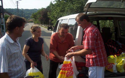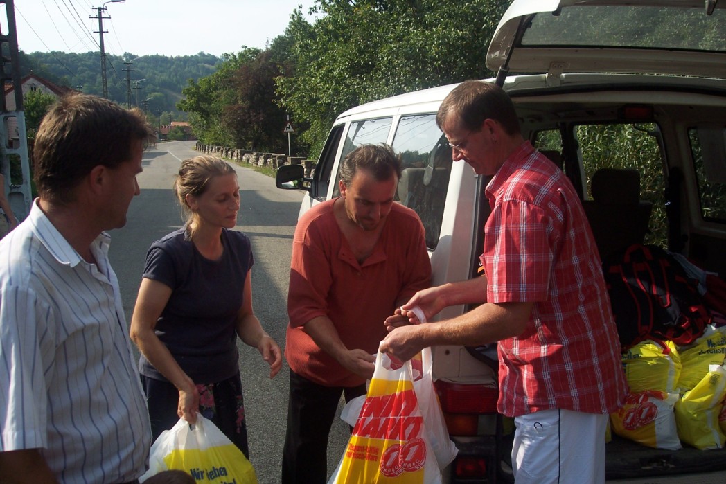 Am Mittwoch den 29. August 2007 Fahrt 230 km südöstlich nach Tomesti, dort werden Lebensmittel und Schultaschen verteilt